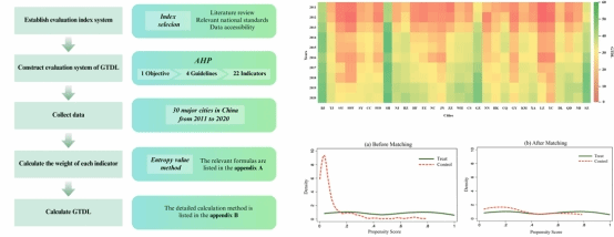 文章旨在检验碳排放权交易(CET)试点政策是否促进城市绿色交通发展水平(GTDL)发展。研究基于2011—2020年中国30个中心城市数据,构建涵盖“社会—环境—经济—系统效能”4维度22指标的GTDL评价体系(熵值法赋权),并以倾向得分匹配—双重差分(PSM-DID)进行因果识别。结果显示,CET显著提升GTDL,理论增幅约8.1%(ATT);样本经最近邻匹配后平衡性良好,结论在更换匹配方法与引入“低碳试点城市”竞争政策检验下保持稳健。异质性上,东部与中西部均显著为正,中西部略高;纬度层面仅低纬地区显著,高纬不显著。机制识别表明,城市化水平、产业结构与环保规制提升政策采纳概率,经济发展水平与交通基础设施则抑制采纳。总体而言,CET试点有助于提升城市绿色交通发展,但需结合区域差异优化扩围与配套政策。该工作为交通领域实现“碳达峰—碳中和”提供定量依据。