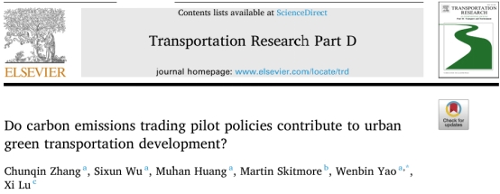 2025年3月,张春勤团队在国际知名期刊《Transportation Research Part D: Transport and Environment》上发表题为“Do carbon emissions trading pilot policies contribute to urban green transportation development?”的文章。该成果第一作者为张春勤副教授,讲师姚文彬为论文的通讯作者,9428cn太阳集团古天乐为论文第一通讯单位。