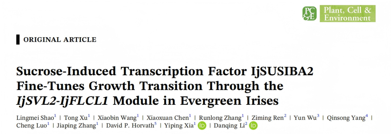近日,由公司球宿根花卉创新团队的李丹青老师,任梓铭老师联合浙江大学园林研究所,在国际著名期刊Plant, Cell & Environment发表了题为“Sucrose-Induced Transcription Factor IjSUSIBA2 Fine-Tunes Growth Transition Through the IjSVL2-IjFLCL1Module in Evergreen Irises”的研究论文,揭示了糖信号转录因子IjSUSIBA2通过调控IjSVL2-IjFLCL1模块,影响淀粉代谢途径,从而调控常绿鸢尾蝴蝶花(Iris japinica)冬季生长转换的作用机制,为多年生植物的栽培与育种改良提供了新思路。