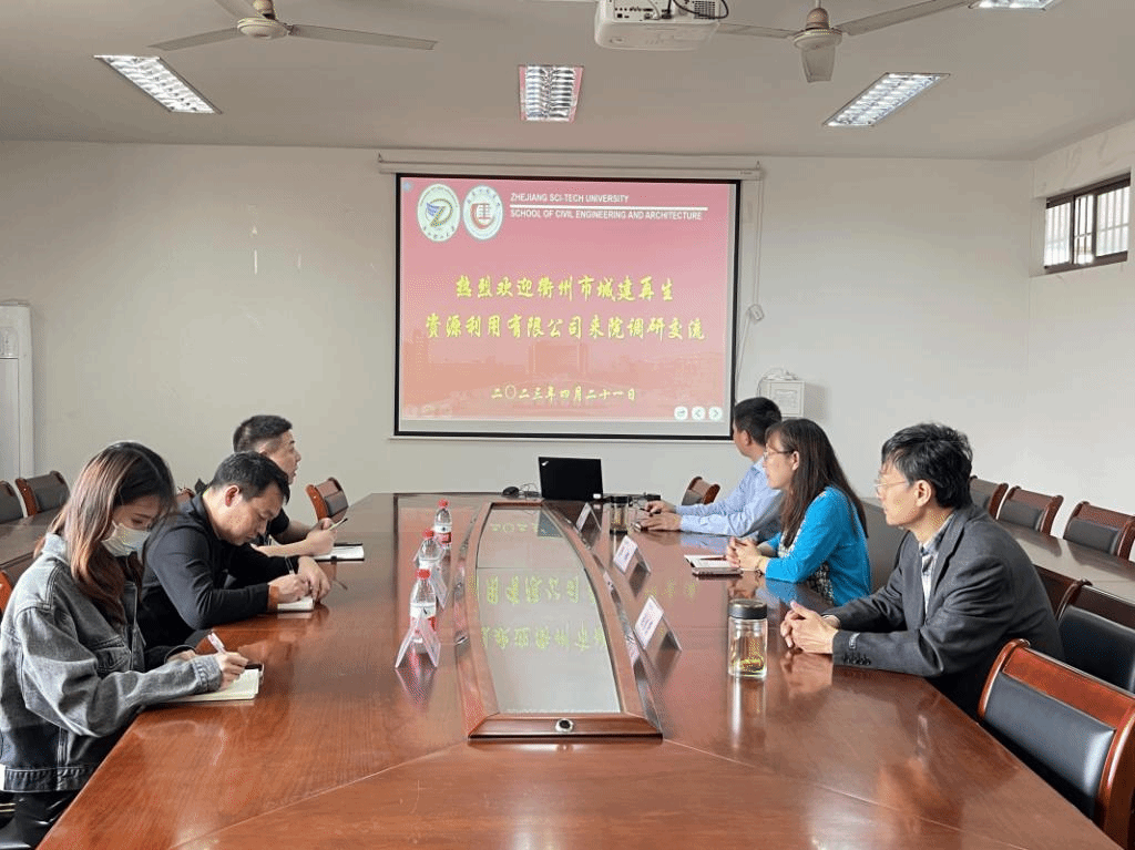 4月21日上午,衢州市城建再生资源利用有限公司经理曹斌一行受邀调研。公司党委书记李娜、副经理刘勇、土木工程学科带头人张振营参加了交流会。会上,双方就校企在固废垃圾方面的科研合作事宜进行交流,并就进一步深化合作联建、推动科研共创走深走实达成共识。